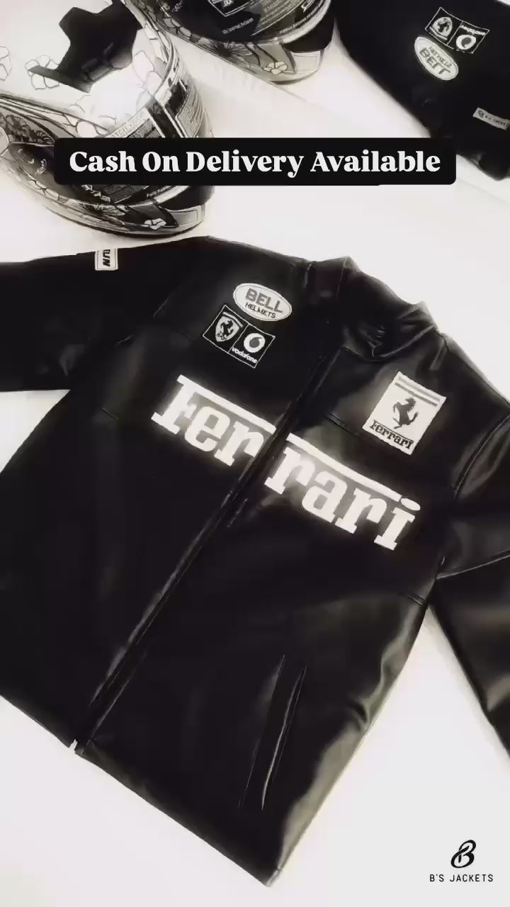 Command attention with the Blacked Ferrari Leather Jacket – Limited Edition. Designed for those who prefer sleek over loud, this jacket features stealth black tones paired with iconic Ferrari embroidery on the chest, sleeves, and back. It’s sharp, it's minimal, and it’s made to turn heads—from the streets of Abu Dhabi to the paddocks of Yas Marina. For those who like their horsepower in silence.
